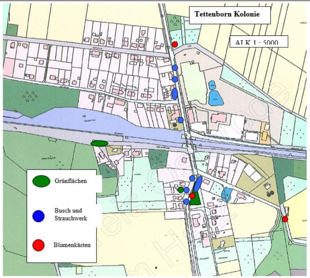 Einen Überblick über die Grünflachen im Ort Tettenborn und in der Kolonie bieten die Grünflächenpläne.